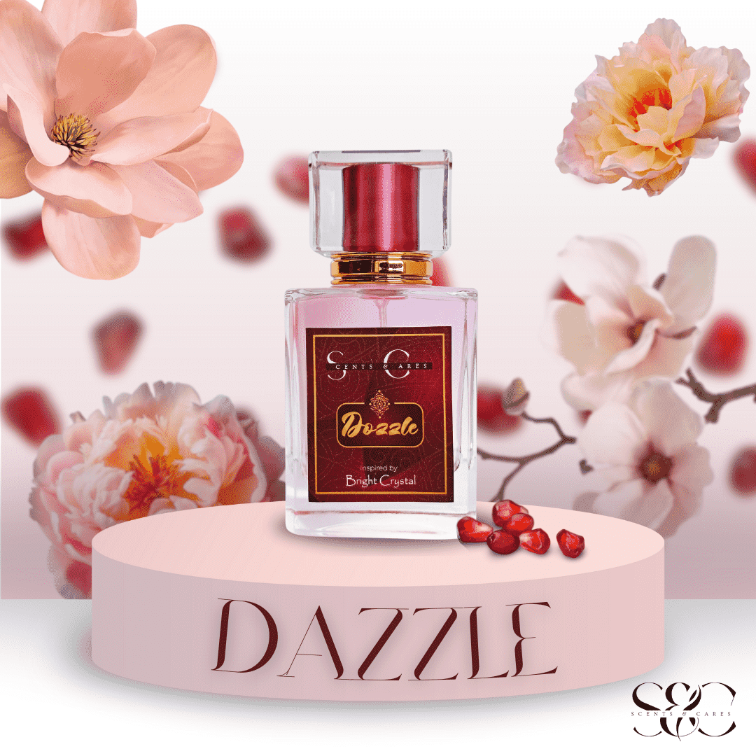 Dazzle sparkles with a vibrant blend of yuzu and pomegranate, enriched by a heart of lush florals and grounded by a warm, woody base.