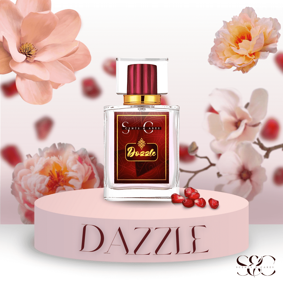 Dazzle sparkles with a vibrant blend of yuzu and pomegranate, enriched by a heart of lush florals and grounded by a warm, woody base.